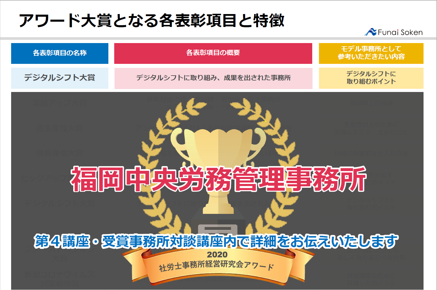 船井総合研究所社労士経営研究会で「2020デジタルシフト大賞」を受賞しました。